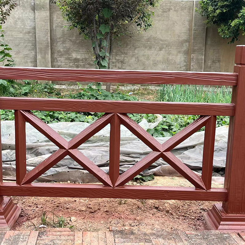 它追求实木的质感和亲和力,接近自然、实用、美观。仿木栏杆喷涂仿木漆需要专用涂料,仿木颗粒水泥的颜色可根据客户需求进行多种选择。